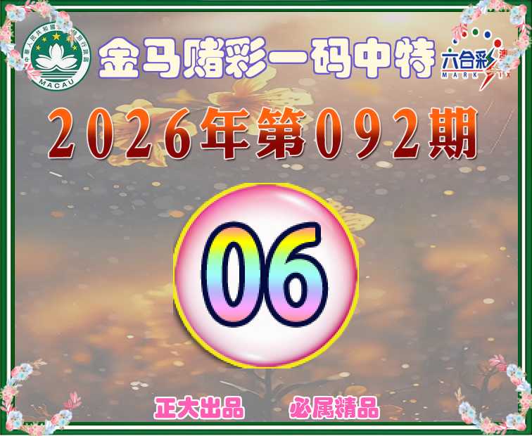 092期:《金马赌彩》 👛一码中特👛【06】开:06