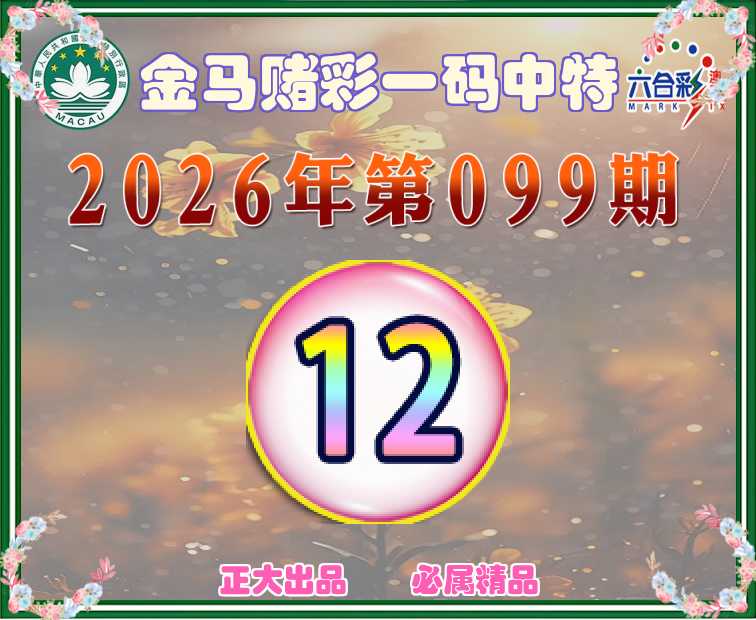 099期:《金马赌彩》 👛一码中特👛【12】开:12