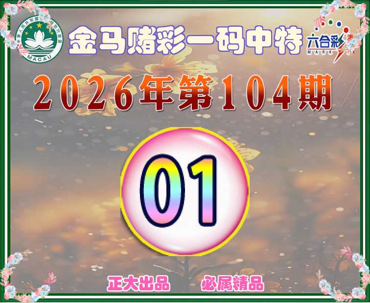 104期:《金马赌彩》 👛一码中特👛【01】开:01
