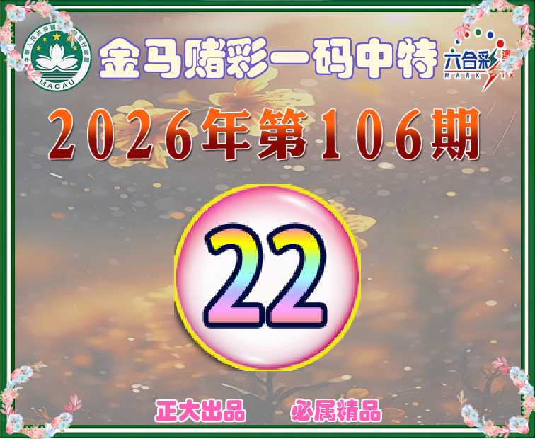 106期:《金马赌彩》 👛一码中特👛【22】开:22
